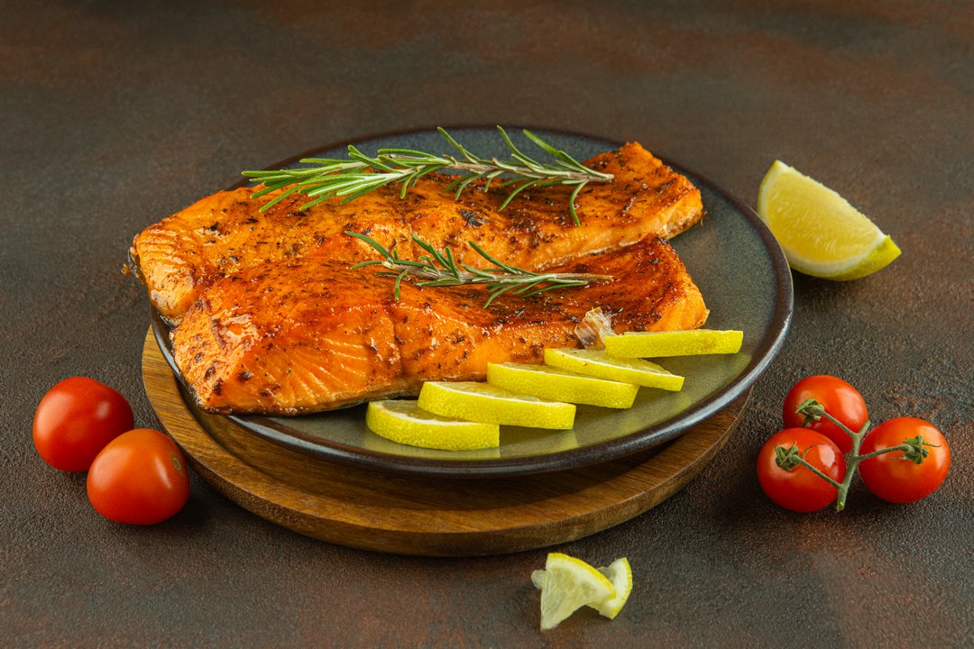 סלמון בתיבול ריחני של שמיר, פטרוזיליה ושמן זית, נאפה לרכות מושלמת.