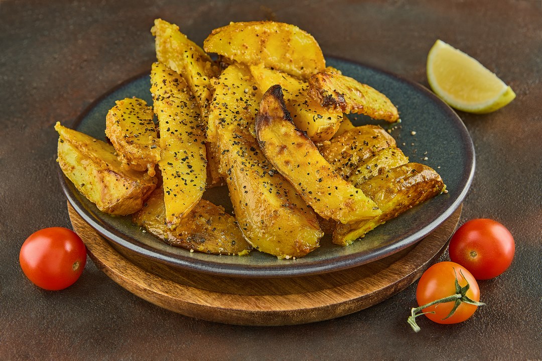 סירות תפוח אדמה צהובות, קריספיות מבחוץ ורכות מבפנים.